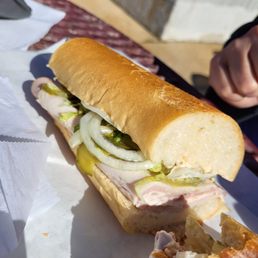 This was our first time going to this place. We got two deli sandwich and side of potato salad and pasta salad. The sandwiches tasted great to me. The breads were freshly made. The meat is of better quality than other sandwich places. I liked the potato salad more than the pasta salad. Our dog Chloe also was able to sit with us at their patio seatings. I did not go inside the shop, my boyfriend did the ordering and obtaining the food. The line seemed to move at a decent pace from what I saw while sitting at the patio area. There were customers coming to order mostly take out the whole time we were there on Sunday afternoon.